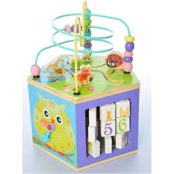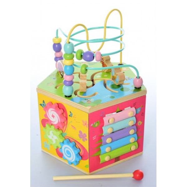 Дерев'яна іграшка Центр розвиваючий MD 2147 лабіринт на дроті, годинник, тріскачка, ксилофон, цифри, сортер, в коробці.