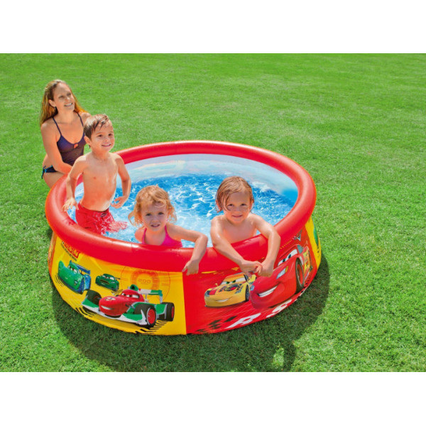 Басейн серії Intex Easy Set Pool легко та швидко встановлюється без застосування додаткових технічних засобів. Процес збирання басейну до наповнення його водою займає лише 10 хвилин. Надувний басейн виготовлений із високоякісного ПВХ червоного кольору, технологія Super-Tough надає стінкам басейну потрійну міцність. Стінки зроблені з трьох окремих шарів: два шари щільного вінілу та один зовнішній – поліестр для особливої міцності. Борти басейну підтримуються надувним кільцем, яке, в міру заповнення басейну, піднімається разом із рівнем води, розправляючи стінки. Басейн не потребує підготовки грунту.