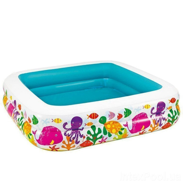 Такий басейн можуть одночасно використовувати двоє чи троє діток, а щоб забави у воді стали ще веселішими, можна доповнити басейн надувними м'якими Intex, будь-якими заводними чи водними іграшками.
