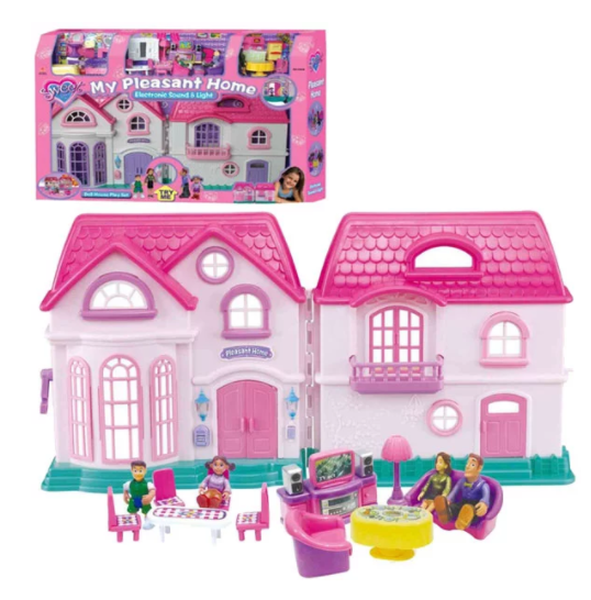 Складний будиночок для ляльок Bambi My Pleasent Home стане дуже затишним місцем проживання для сімейного лялькового сімейства, яке йде в комплекті. Також у наборі є безліч предметів лялькових меблів, які дитина зможе розставити в кімнатах так, як їй сподобається.