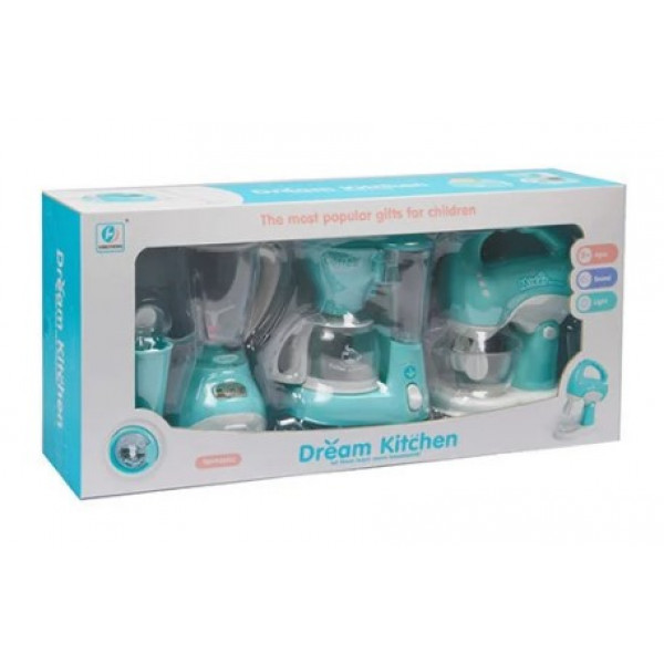 Побутова техніка YH199-1B блендер-обертається гвинт, міксер-обертаються віночки, кавоварка-ллється вода, звук, світло, на батарейках, в коробці.