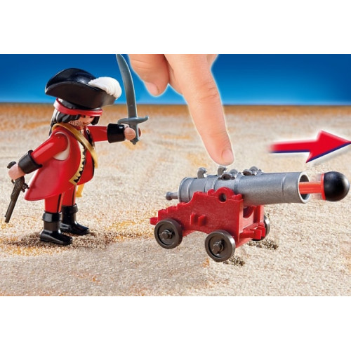 Також у набір входять дві міні-фігурки піратів зі зброєю, шлюпка з веслами, гармата, яка по-справжньому стріляє пластмасовим ядром, якщо натиснути на кнопку, скриню, повну скарбів, череп та папугу.