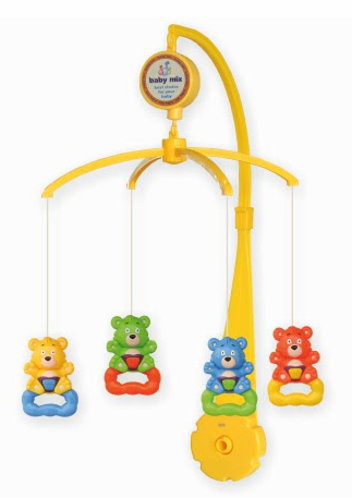 Пластмасові карусельки з музикою на дитяче ліжечко. Різнокольорові іграшки, які також можуть бути використані як окремі іграшки, прикрашають малюкові час, проведений у ліжечку, а заспокійлива мелодія, що доноситься з механізму, допомагає дитині заснути.