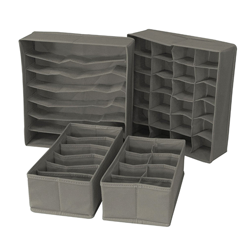 Такі органайзери також стануть вдалим доповненням у подорожі, і у вас завжди будуть під рукою акуратно складені улюблені особисті речі. У складеному стані вони досить компактні і не займатимуть багато місця. Ці ящики-органайзери для зберігання речей допоможуть вам упорядкувати гардероб, розкласти все на місця у вашій шафі. Вони зручні своєю мобільністю, тому що легко поміщаються в комод, валізу, шафу або на полицю. Зібрати їх дуже легко, всього кілька рухів і у вас 4 стильні та місткі ящики для зберігання речей.
