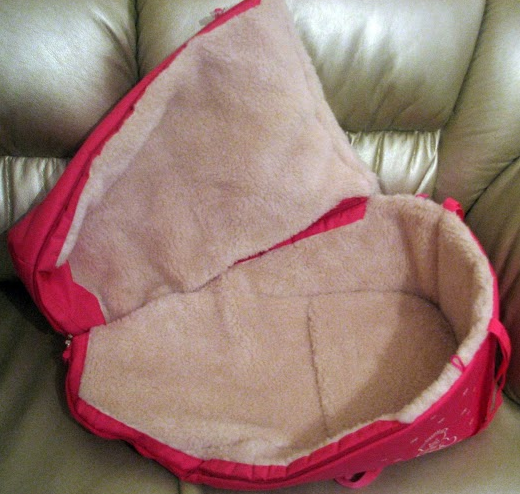 Внутрішня частина - штучне хутро. А в горизонтальній частині вкладиша вшитий додатковий прошарок з поролону.