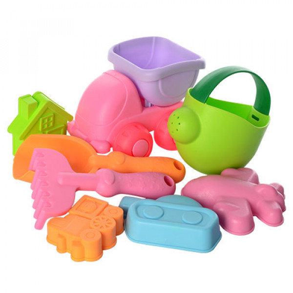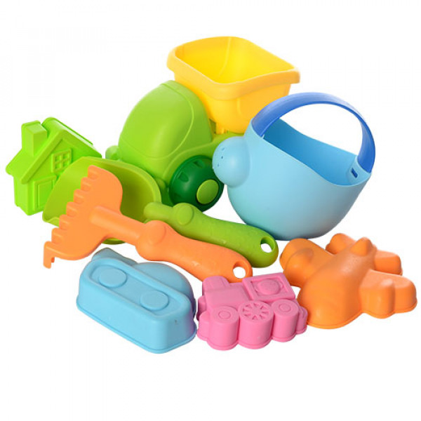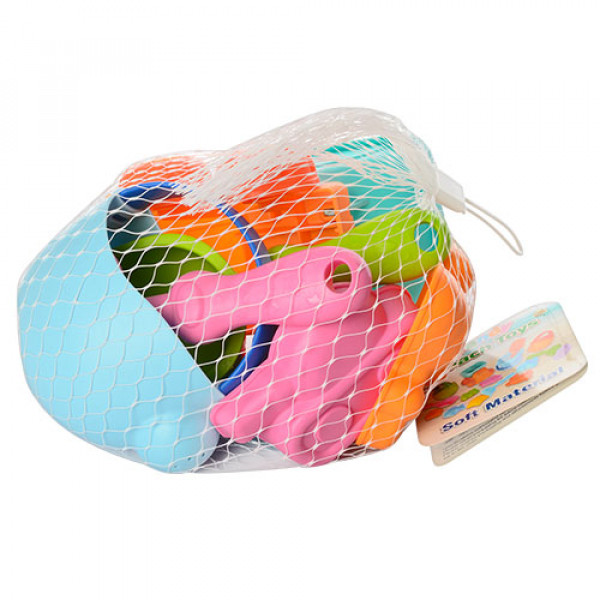 М'який набір для пісочниці - виконаний із силікону, має матову шорстку поверхню, дуже приємний на дотик. При цьому цей безпечний, оскільки не ламається під час гри, падіння на землю. Маля може наступити на лопатку, пасочку, грабельки, а ті залишаться цілими.