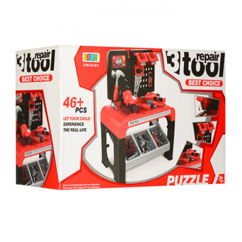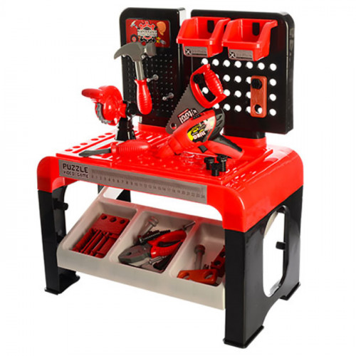 Ігровий набір дозволить хлопчику відчути себе справжнім майстром на всі руки з дитинства. Для цього в його арсеналі буде чудовий верстат, з повним набором інструментів. Тут усе, як у тата! У цікавій ігровій формі дитина отримає навички, які стануть у нагоді їй у майбутньому: які бувають болти, як правильно закручувати по різьбленню, як поводитися з різними інструментами. Всі їх можна зберігати на вестаку - на вертикальних стійках або спеціальних лотках.