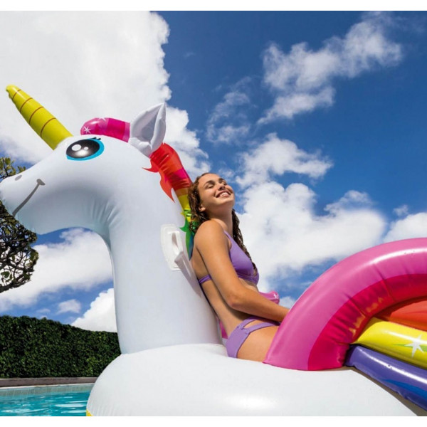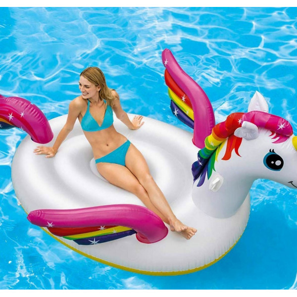 Плотик надувний Intex Єдиноріг - великий та милий надувний єдиноріг для розваг на воді. На ньому легко розмістяться дві людини. Такий стильний і барвистий плот приверне увагу всього пляжу.