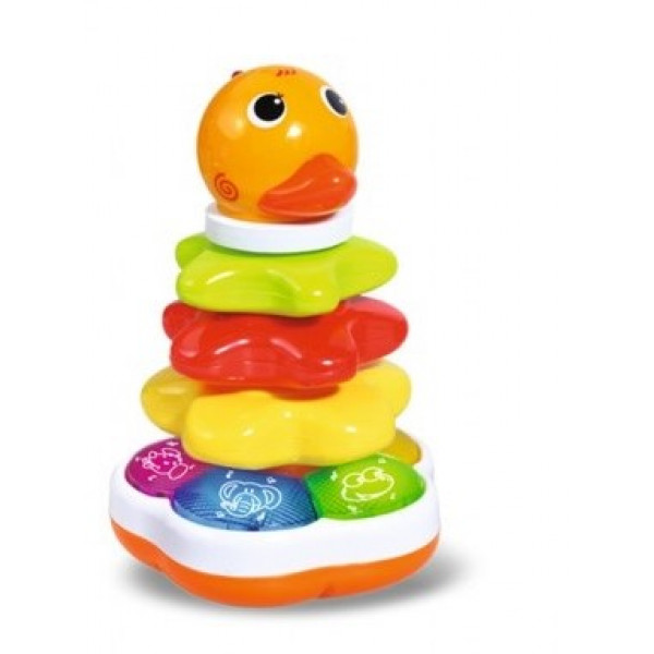 Щоб почути голос качки та кумедні мелодії, одягни на пірамідку верхівку і легенько натисни на неї.