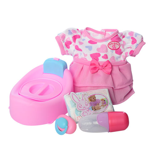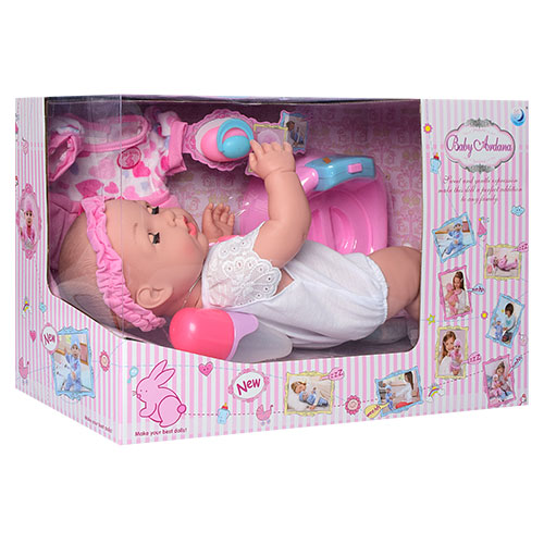 У комплекті: соска-світиться, горщик-зв, вбрання, пляшечка, підгузник, п'є-писає