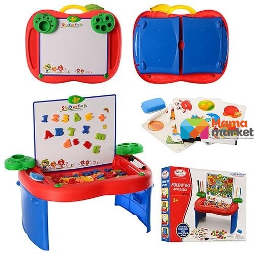 Набір відмінно підходить для творчих ігор та навчання, складається зі столика для різних аксесуарів та магнітної дошки, яка може виконувати функцію дошки для малювання та творчості.