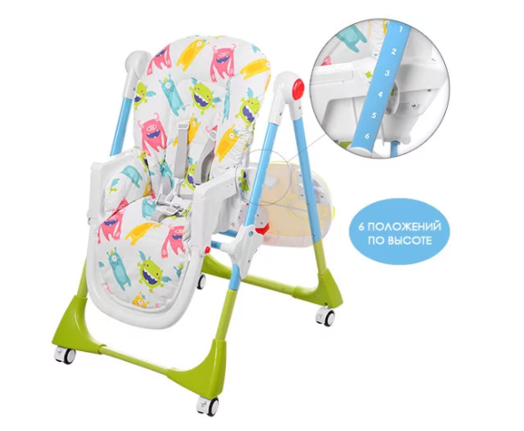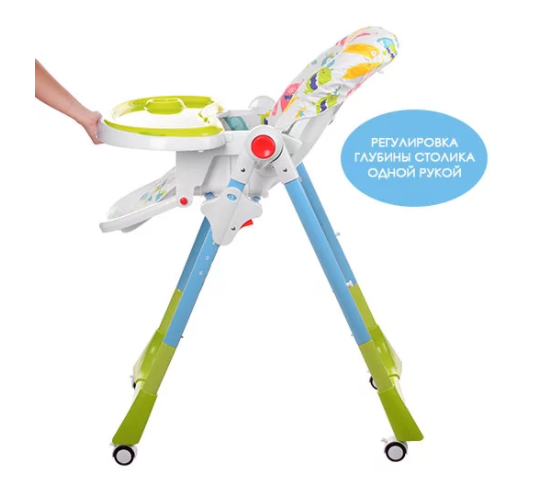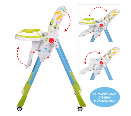Стільчик регулюється в кількох положеннях по висоті та нахилом спинки.